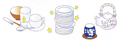 @ガラス食器類までピカピカ。しかも除菌効果で衛生的です。すすぎも非常に簡単で、後片付けもラクラク。 Aスプレータイプの容器に数グラムのU−クリーンを溶かすと、使いやすさが広がります。 B茶渋を落としたいときは、少し増量してU−クリーンを溶かし、お湯を注いで5〜10分漬け置きし、水ですすいでください。(温度は高いほど効果的です。) |